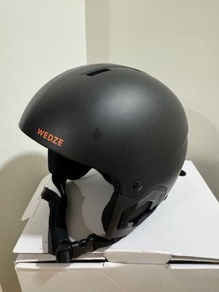 Casco de esquí Wedze en color negro, diseñado para niños. Talla XS 48-52 cm. Cuenta con un acabado mate y detalles en naranja. - Marca: Wedze - Color: Negro - Detalle: Logo naranja - Diseño: Ventilaciones en la parte superior