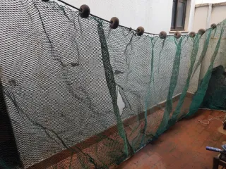 Red de pesca para la albufera, longitud de 5,25 metros aproximadamente, con una boca para colocar mornell. En perfecto estado - Malla resistente. - Flotadores incorporados.