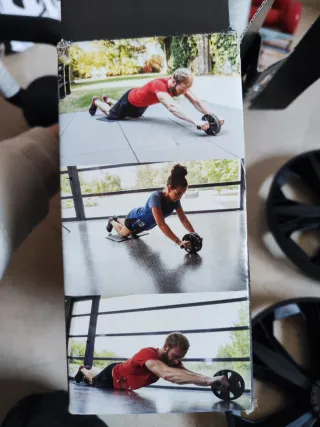 Rueda abdominal de Decathlon con doble modo de uso (estable e inestable). Diseñada para el entrenamiento del core. La caja está un poco desgastada pero el interior nuevo. - Incluye rodillo y asas. - Color negro y detalles en rojo. - Se adhiere a todo tipo de suelos (parquet, hormigón, baldosas). - Puede transportarse fácilmente ya que se desmonta por completo.