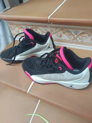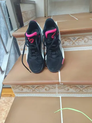 Zapatillas de baloncesto Nike Jordan Luka. - Talla US 9. - Diseño en negro con detalles en rosa y blanco.