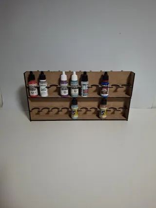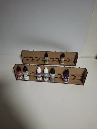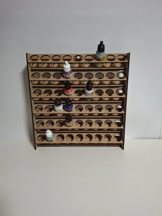 Organizador de Mdf para botellas de pintura de modelismo tipo vallejo, compatible con estanterías Kallax de Ikea. Ideal para mantener tus pinturas ordenadas y accesibles. - Fabricado en mdf - Diseño modular para Kallax. 20€ la unidad. A partir de 4 unidades a 15€ cada una. Se vende desmontado si se quiere montado la venta ha de ser en persona. El modelo de 25mm tiene capacidad para 84 pinturas(4 filas de 10 botes y 4 de 11). El modelo de 35 mm tiene capacidad para 60 botes (4 filas de 7 botes y 4 de 8). Las pinturas no estan incluidas, estan de ejemplo, son solo una muestra de tipo de botes compatibles Warhammer, Vallejo MESBG