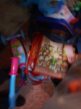 Se vende lote de juguetes variados. - Incluye un saco de aproximadamente 1 metro de alto. - Contiene un patinete. - Incluye un puzzle de 2000 piezas con personajes animados.