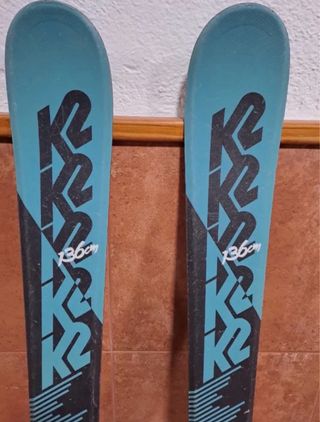 Esquís K2 de 136cm, ideales para jóvenes esquiadores. Su diseño moderno en color turquesa y negro los hace destacar en la nieve. - Longitud: 136 cm. - Marca: K2. - Color: Turquesa y negro.