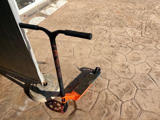 Patinete Oxelo en colores naranja y negro. - Manillar negro. - Base naranja. - Ruedas negras. Lija rota se puede ver en la foto I un mango un poco roto Precio negociable