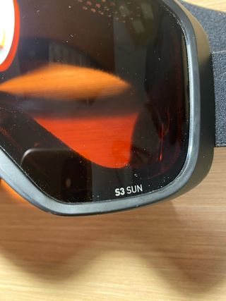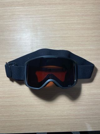 Gafas de esquí para jóvenes, diseñadas para ofrecer protección y comodidad en la montaña. - Lente con tinte naranja. - Correa ajustable. - Marco negro.