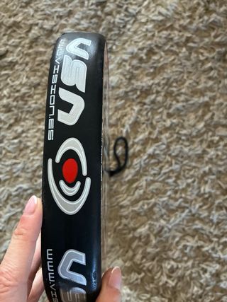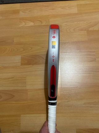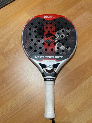Pala de pádel Kombat Fuji, diseñada por Manu Martin. Presenta un diseño moderno y llamativo. - Superficie con acabado mate. - Marco de carbono. - Grip blanco. Pala con 10 partidos, se vende porque no me adapto al mango largo. Tiene un pequeño roce superficial como se puede observar en la cuarta foto, no afecta a su funcionalidad.