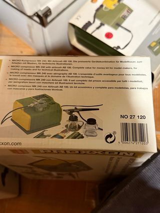 Compresor para aerógrafo, ideal para modelismo y manualidades. Esta en perfecto estad. Solo recogida en mano. Pesa nueve kilos. - Diseño compacto y portátil. - Incluye cable de alimentación.