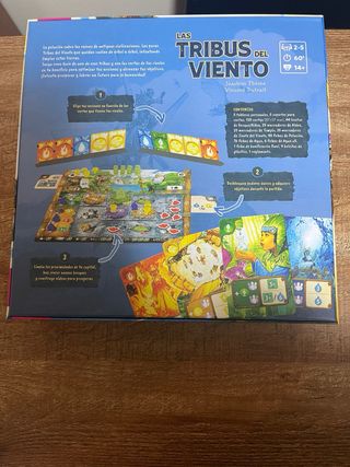 Juego de mesa Las Tribus del Viento. Con una partida, en perfecto estado. Español. Es un juego de mesa familiar de estrategia medioambiental de Tranjis Games, donde lideras tribus post-apocalípticas para restaurar un planeta contaminado plantando bosques y construyendo aldeas en árboles, usando cartas elementales que interactúan con las de tus vecinos para limpiar la polución y cumplir objetivos. Tiene mecánicas de colocación de losetas, gestión de mano y objetivos, una complejidad media y una duración de unos 60-90 minutos A partir de 12 años De 1 a 5 jugadores