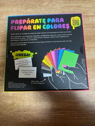 Juego de mesa Colour Brain, perfecto para divertirse en familia o con amigos. Juego jugado sin fundas y las cartas tienen desperfectos (foto) ¡RESPUESTAS EN COLORES!: Un giro único en los juegos de preguntas tradicionales: ¡tienes las respuestas desde el principio, solo que están en forma de colores! DIVERSIÓN PARA GRANDES GRUPOS: Ideal para reuniones familiares, fiestas y noches de juegos. Se puede jugar en equipos o individualmente, hasta con 20 jugadores. PREGUNTAS DE CULTURA POPULAR: sobre cultura general con 300 tarjetas de preguntas únicas y desafiantes. - Apto para mayores de 12 años. - Para 2 a 20 jugadores.