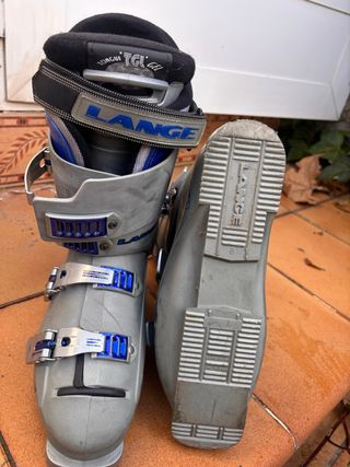 Botas de esquí LANGE TGL Gel en buen estado. - Color gris con detalles en azul. - Cierre con hebillas metálicas. - Lengüeta con acolchado TGL Gel.