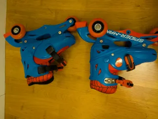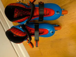 Patines ajustables con diseño de Spiderman, ideales para aprender a patinar. - talla evolutiva de 27 a 30 - Cierre con velcro y hebilla. - Se puede poner a dos ruedas o 3 Usado en 2 ocasiones porque le crecio el pie y ya le iba justo