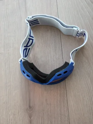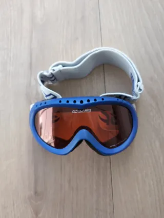 Gafas de esquí para niños de 4 a 6 años. Marca Salice - Marco azul. - Lente con acabado naranja AV 400 anti fog (niebla) - Correa ajustable blanca con detalles azules.