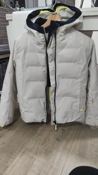Chaqueta de esquí Wedze para niñ@ de 12 años, modelo P580. Es una prenda de abrigo con un diseño moderno y funcional. - Color gris claro. - Capucha integrada. - Cierre de cremallera frontal. - Bolsillos laterales, interior y en manga