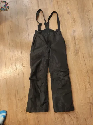 Pantalón de esquí con peto en color negro. Talla 134/140 Usado un par de veces. - Tirantes ajustables. - Bolsillos laterales.