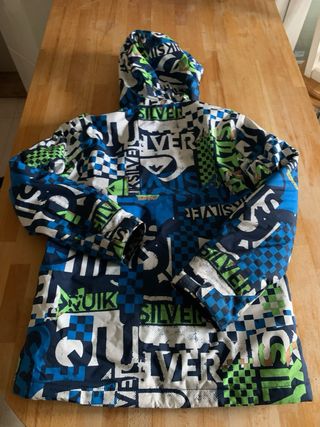 Anorak de esquí Quiksilver con un diseño llamativo y moderno. - Estampado gráfico multicolor. - Tecnology Dry Flight 10k. - Capucha integrada. - Cremallera frontal. - Bolsillo pequeño en manga derecha para tarjeta del fortfait. - Bolsillo interior para las gafas - Talla infantil 14 años. - Dos bolsillos exteriores en la parte frontal.