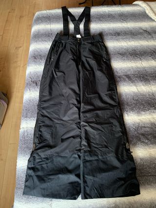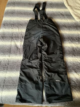 Pantalón de esquí WEDZE en color negro, diseñado para la práctica de deportes de invierno. Cuenta con tirantes ajustables para mayor comodidad y sujeción. - Tirantes ajustables. - Cinturón ajustable. - Cremalleras laterales en los bajos. - Sistema de recogida de pierna mediante una simple cremallera para hacer más corta la medida de la pierna. - Talla de 12-14 años - Bolsillos con cremallera.