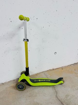 Patinete de la marca Globber con tres ruedas y luces. - Color verde lima. - Diseño de tres ruedas para mayor estabilidad. - Empuñaduras con diseño ergonómico.