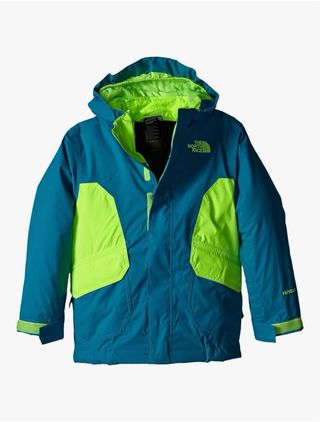 Anorak infantil de The North Face con forro polar. Talla 10/12 años - impermeable - Color azul y verde lima. - Capucha integrada. - Bolsillos frontales con solapa.