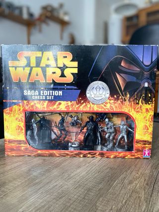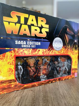 Set de ajedrez Star Wars Saga Edition. - Incluye figuras de personajes icónicos de Star Wars. - Edición coleccionista. Nunca abierto ni usado