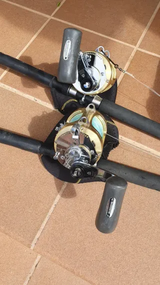 Se venden dos equipos de pesca Shimano Tiagra 30 LRS y caña kali 30-50 lbs - Color dorado. - Incluyen fundas protectoras. - Cañas kali blue PRECIO POR EQUIPO Pesca howk spot okuma makaira titus brumeo curri yamashita halco sebile daiwa saltiga avet rapala tanacom yuki halco .