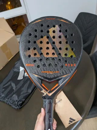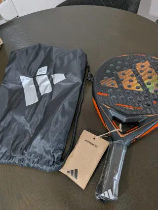 Pala de pádel Adidas Cross It Carbon Ctrl. Nueva! Tiene garantía. - Incluye funda. - Incluye kit de accesorios. Forma: Redonda, diseñada para un control profesional y precisión absoluta. Material: Superficie de Carbono 6K y núcleo de goma Soft Performance EVA para un toque firme pero cómodo. Peso: Aproximadamente entre 360 y 375 gramos. Tecnología: Incluye Dynamic Air Flow para mejorar la aerodinámica y Spin Blade Decal para efectos.