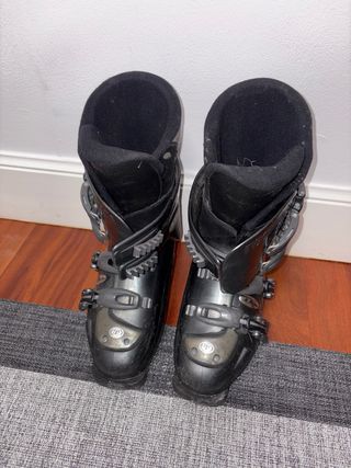 Botas de esquí de color negro, diseñadas para ofrecer comodidad y rendimiento en la pista. - Cierre con hebillas ajustables. - Interior acolchado para mayor confort. - Diseño robusto y duradero.