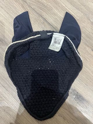 Orejeras de equitación en color azul marino. Cuentan con un diseño tejido y detalles brillantes. - Orejeras de tejido con acabado texturizado. - Detalle de cinta trenzada en el borde. - Adornos de pedrería en la parte frontal inferior.