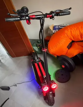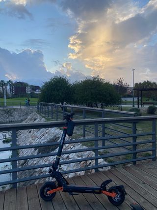 Patinete eléctrico Kukirin G2 Pro en color negro y naranja. Se ha utilizado solo un mes. - Diseño deportivo. - Ruedas todoterreno. - Manillar ajustable.