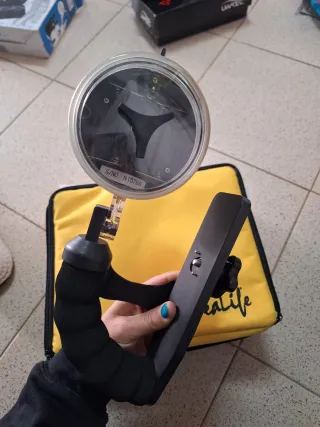 Foco de buceo con asa y funda. - Incluye asa ergonómica. - Funda de color amarillo. - Número de serie visible: N15788.