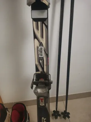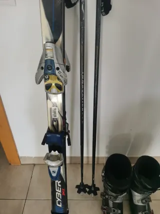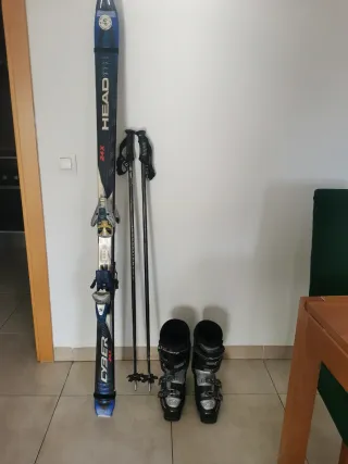 Conjunto completo de esquí para disfrutar de la montaña. Incluye esquís, bastones y botas. - Esquís Head Cyber 24X. 1,80 - Bastones de esquí. - Botas de esquí.