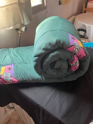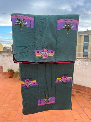 Saco de dormir para adulto con estampado de Coca-Cola en tonos verdes y rosas. - Diseño con el logo de Coca-Cola. - Tejido suave al tacto. Medidas: 1'80cm x 70cm