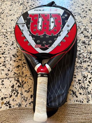 Raqueta de pádel Wilson Tour BLX. - Diseño en color rojo, negro y blanco. - Incluye funda protectora. - Peso de 355g.