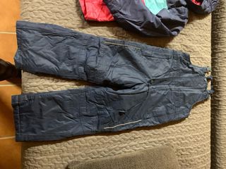 Pantalón de esquí azul marino, talla 110. - Tirantes ajustables. - Bolsillos frontales. - Detalle de ribete claro en los laterales. - Cierre de botón en la parte frontal.