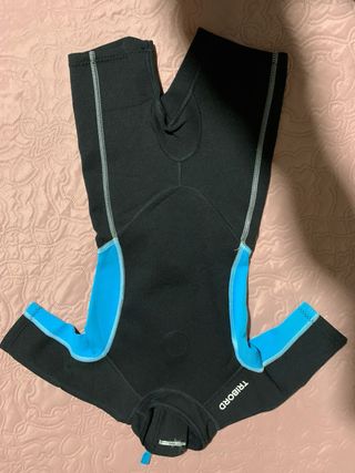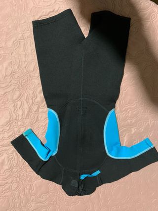 Neopreno corto de surf Tribord en talla 6. Diseñado para la práctica deportiva acuática. - Color negro con detalles en azul. - Material de neopreno. - Diseño de pierna corta.