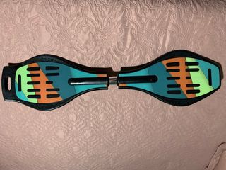 Waveboard con un diseño moderno y llamativo. - Diseño de dos tablas conectadas. - Colores vibrantes: verde, azul y naranja. - Superficie con textura para mejor agarre.