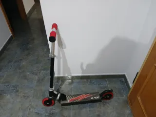 • Modelo clásico de empuje con grandes ruedas de 200 mm. • Muy cómodo para ciudad / desplazamientos cortos. • Estructura de aluminio, plegable. • Estado: usado, con algunas marcas visibles pero funciona perfectamente. • Ideal para desplazamientos urbanos. Precio: 55 € (negociable)