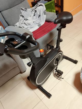 ** nueva**Bicicleta estática de color negro, ideal para entrenar en casa. - Diseño moderno y compacto. - Asiento acolchado. - Pedales con agarre. - Pantalla digital.
