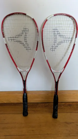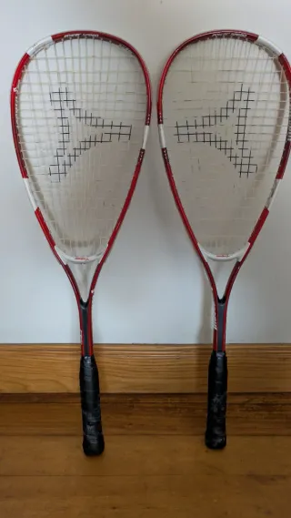 Se venden dos raquetas de squash Speed Mass 230. - Color rojo y blanco. - Empuñadura negra.