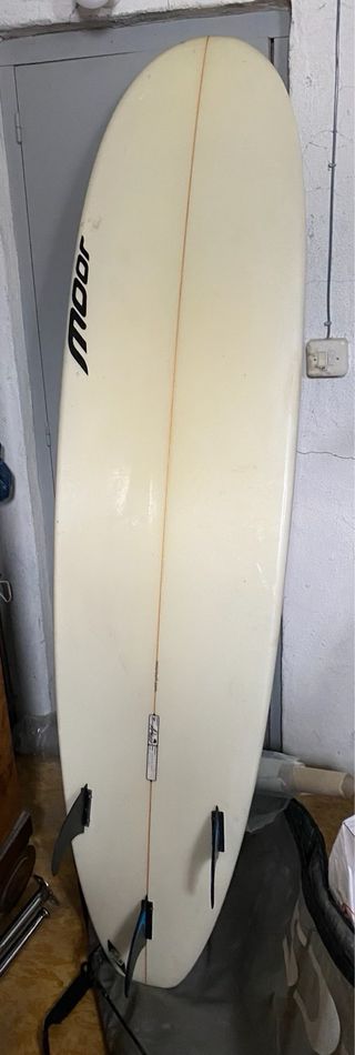 Tabla de surf MOOR Mini Malibu 6’8” Tabla muy estable y fácil de remar, ideal para progresión o para quien busca comodidad en olas pequeñas y medias. Las marcas que se ven son de la parafina, la tabla no tiene golpes ni reparaciones, está en muy buen estado estructural y lista para surfear. Poquísimo uso