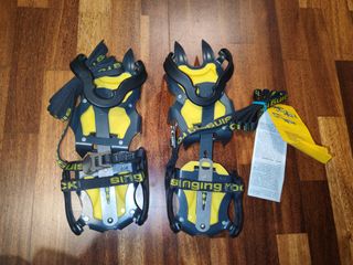 Crampones Singing Rock, nuevos y en su caja original. - Diseño en color negro y amarillo. - Incluye correas de sujeción.
