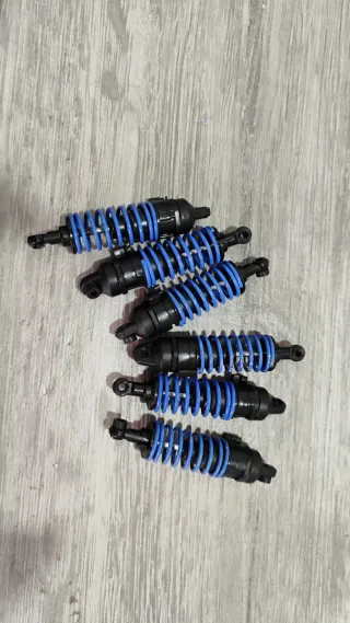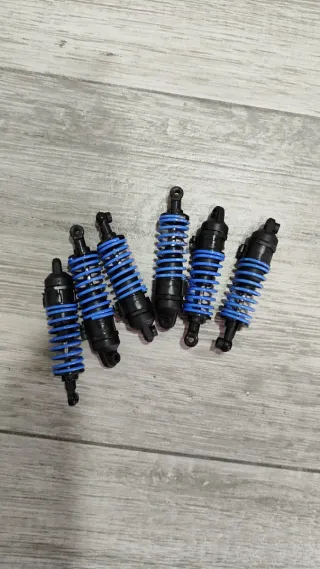 Conjunto de 6 ud. amortiguadores para coche de radiocontrol. 70 mm entre ojales. - Color azul y negro. - Diseño de muelle. - Piezas para coche RC.