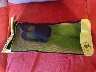 Aletas de natación en color verde y negro, perfectas para buceo o snorkel. Incluyen una bolsa de malla para transportarlas fácilmente. - Aletas de natación. - Bolsa de malla incluida. - Color verde y negro.