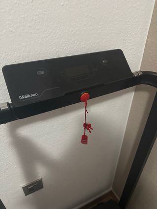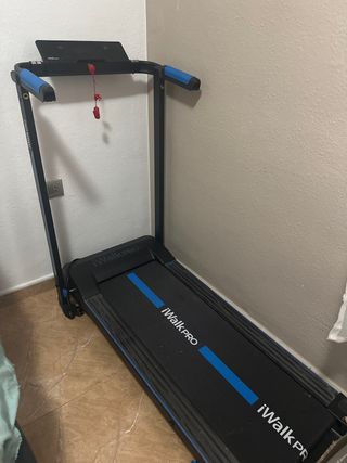 Cinta de correr iWalk PRO en color negro con detalles en azul. - Diseño plegable para fácil almacenamiento. - Empuñaduras acolchadas para mayor comodidad. - Sistema de seguridad con cordón rojo. -Nueva con apenas uso.