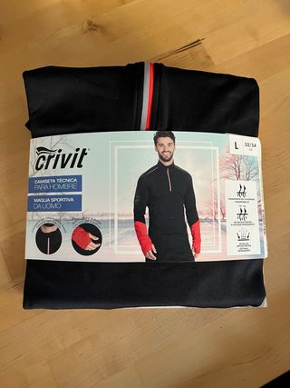 Camiseta técnica para hombre CRIVIT. Nueva y en su paquete original. - Cremallera solapa para el tirador - Abertura para el pulgar - Transporte de la humedad - De secado rápido - Detalles reflectantes - Talla 52-54 (EUR)