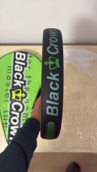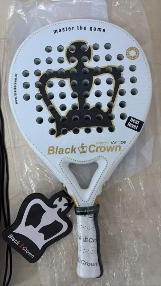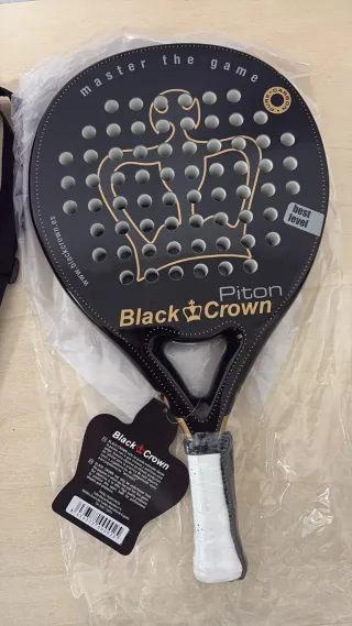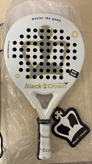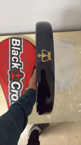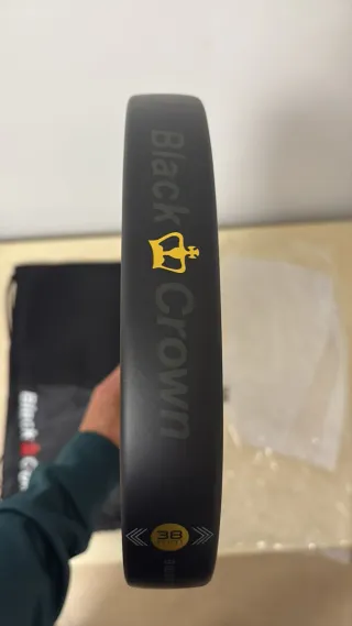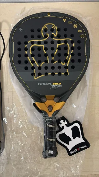 Pala de pádel Black Crown Patron Gold en perfecto estado. Diseñada para ofrecer un gran rendimiento en la pista. - Pala de pádel. - Modelo: Patron Gold. - Marca: Black Crown.