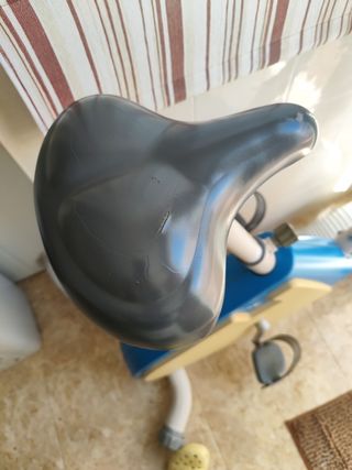 Bicicleta estática para ejercicio en casa. Su diseño es compacto y funcional. - Asiento acolchado. - Pedales con agarre. - Estructura resistente.