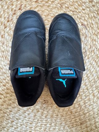Zapatillas de fútbol sala Puma T31 para niño. - Color azul y negro. - Cierre de velcro. - Logo Puma en el talón.
