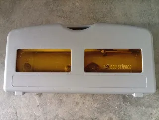 Telescopio de la marca Edu Science, ideal para iniciarse en la astronomía. Se encuentra guardado en su maletín original. - Telescopio de color gris. - Maletín de transporte gris con compartimentos.