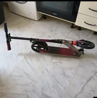 Patín Oxelo de Decathlon, ideal para desplazarse. - Diseño plegable para facilitar su transporte. - Altura del manillar ajustable. - Ruedas resistentes para un deslizamiento suave.