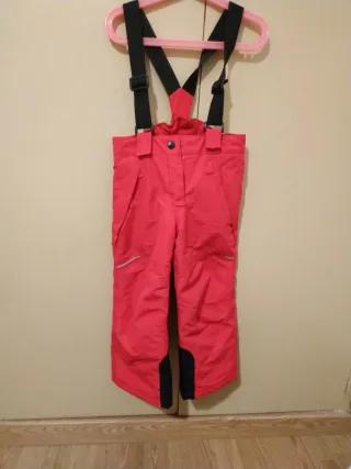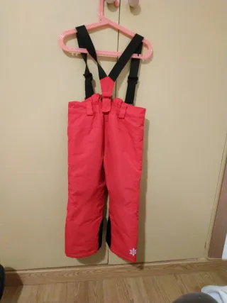 Pantalón de nieve infantil de color rojo, ideal para mantener a los más pequeños abrigados y secos en la montaña. Cuenta con tirantes ajustables para mayor comodidad. TALLA de 2 a 4 años (98/104 cm) - Tirantes negros. - Detalle reflectante en la pierna. - Zona inferior de la pierna en color negro.